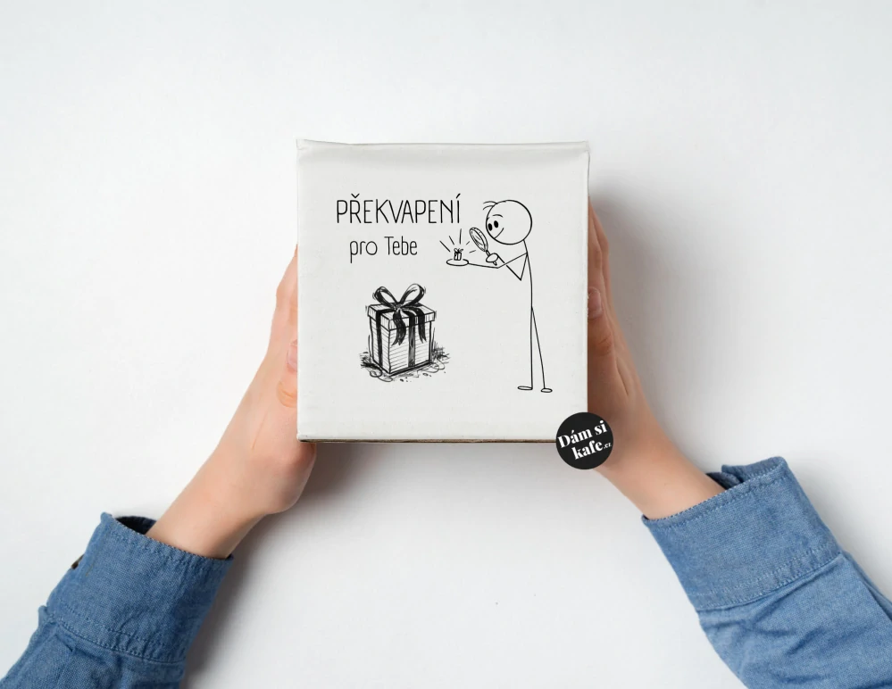 Dárková krabička na hrnek „Překvapení pro Tebe“ – Hravý minimalismus ✏️✨